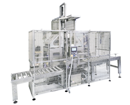 L’operatore appoggia la forma sulla rulliera di carico, fino ad un massimo di 4 forme, la rulliera di carico essendo in leggera pendenza, fa scorrere la forma fino allo stopper presente sulla rulliera, quando la fotocellula legge la presenza della stessa abbassa il fermo in modo da far procedere la forma, al passaggio di quest’ultima il fermo si risolleva in modo automatico, fermando la forma successiva.